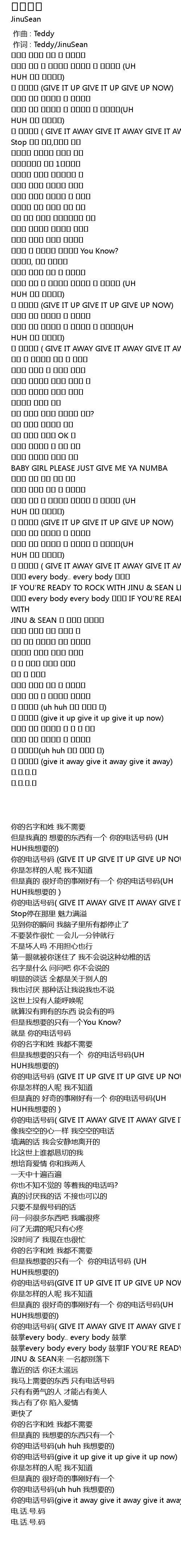 | [00:18.360] | 네 전화번호 (GIVE IT UP GIVE IT UP GIVE UP NOW) |