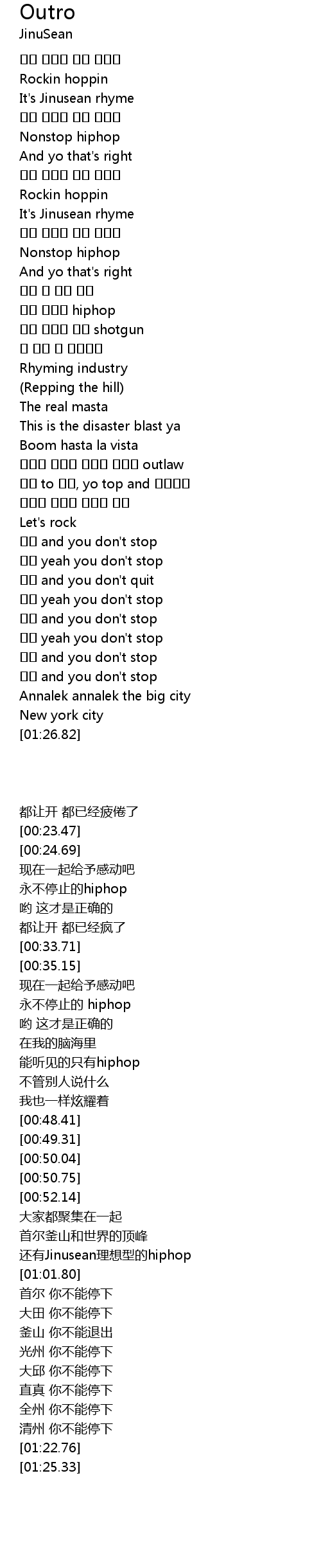 | [01:20.06] | 청주 and you don't stop |