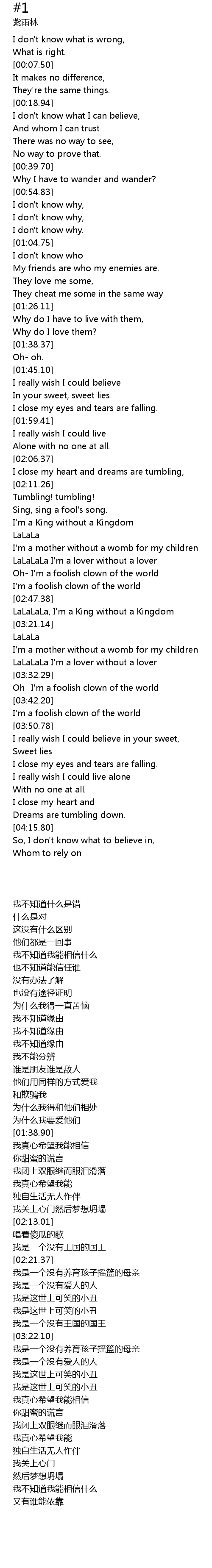 | [03:32.93] | Oh- I'm a foolish clown of the world |