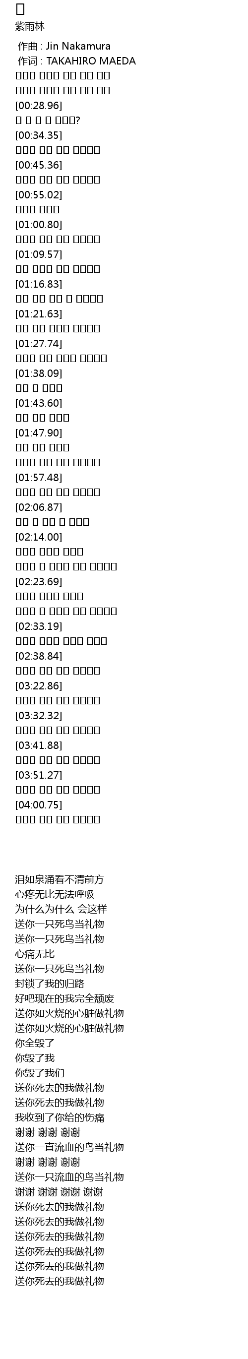 | [00:38.65] | 너에게 죽은 새를 선물할께 |