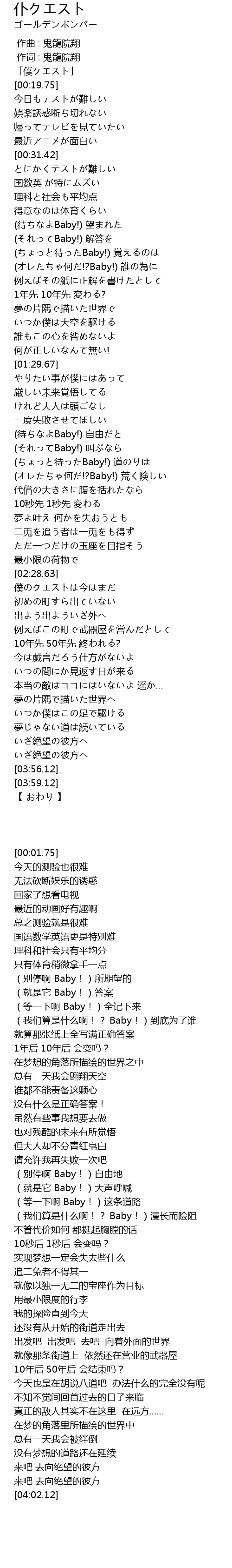 | [00:00.358] | 作词 : 鬼龍院翔 |