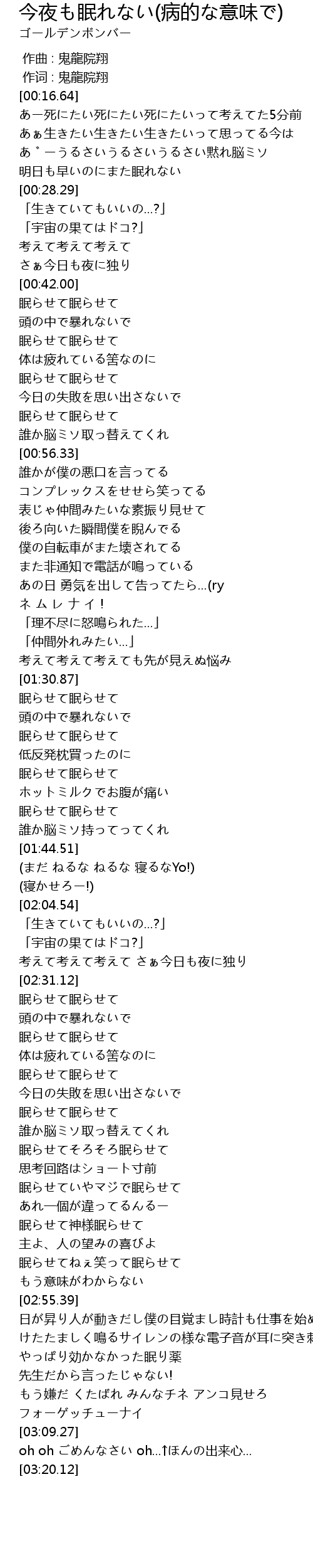 | [02:47.47] | 眠らせていやマジで眠らせて |
