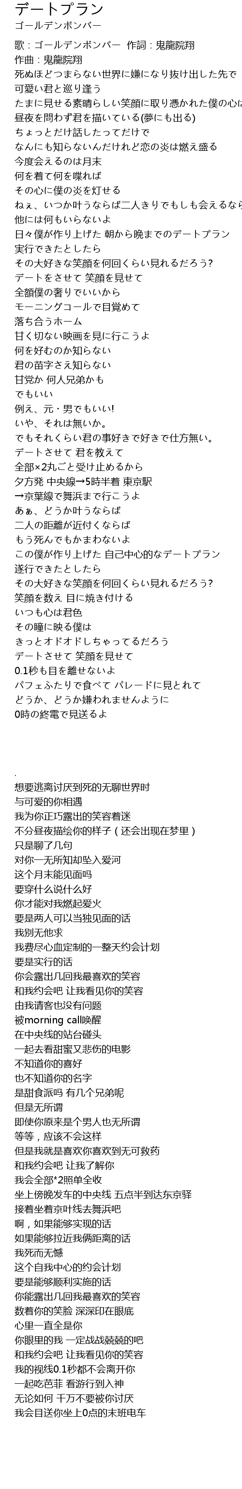 | Song | デートプラン |