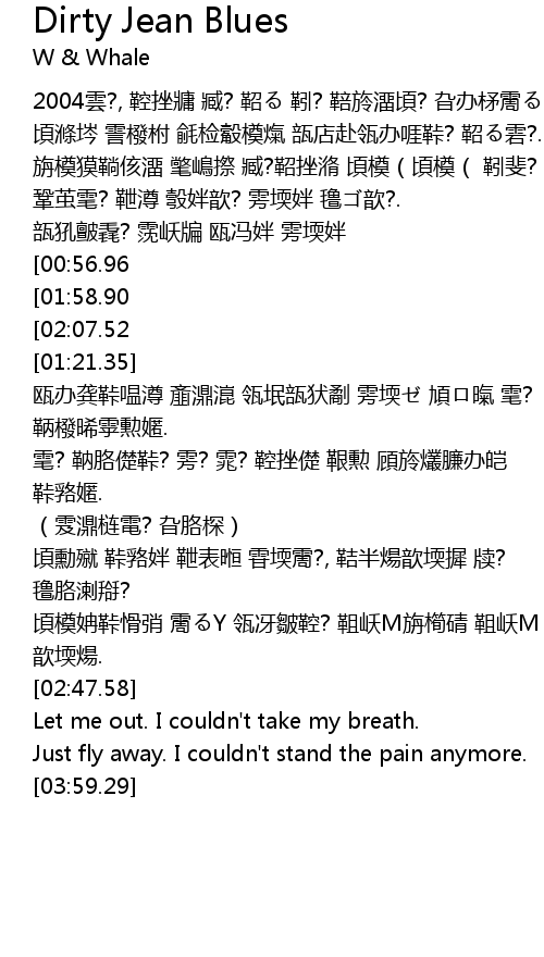 | [01:38.96] | (雭濎梿電? 旮胳棎) |
