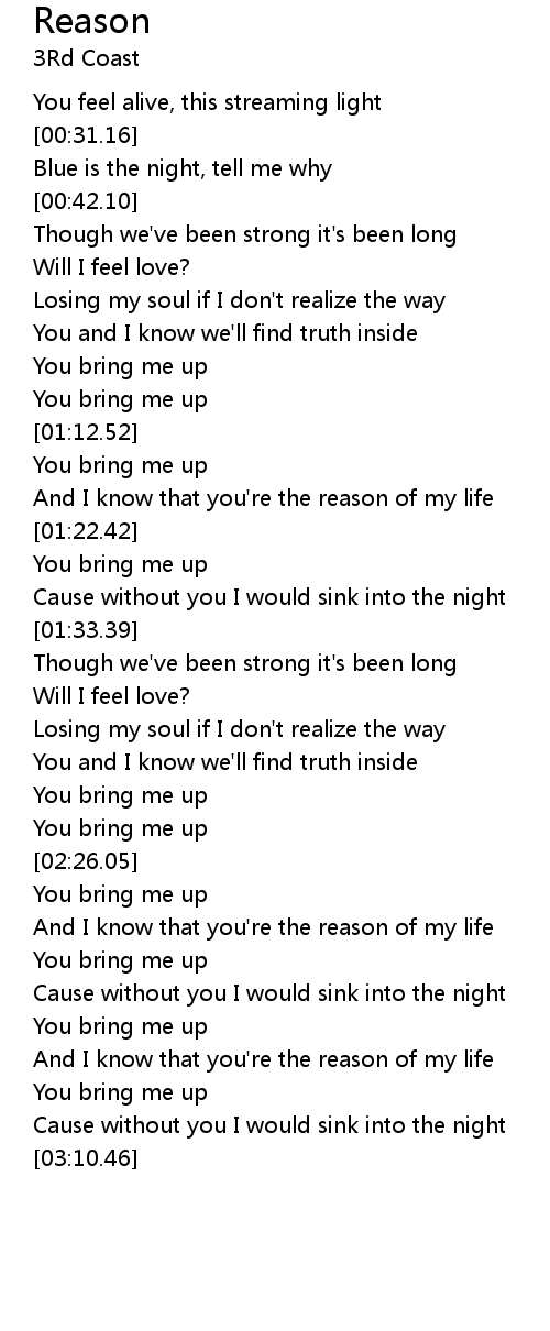 And I know that you're the reason of my life |
