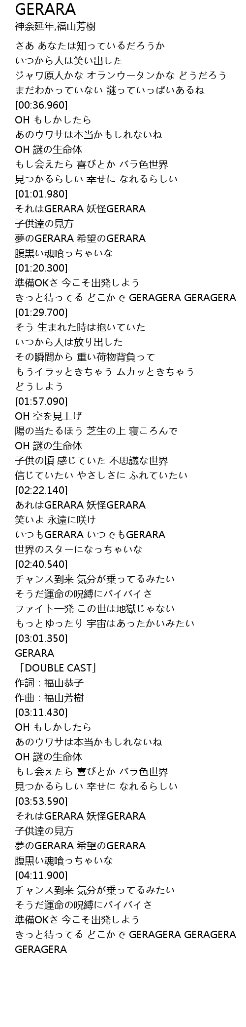 | [03:53.960] | それはGERARA 妖怪GERARA |