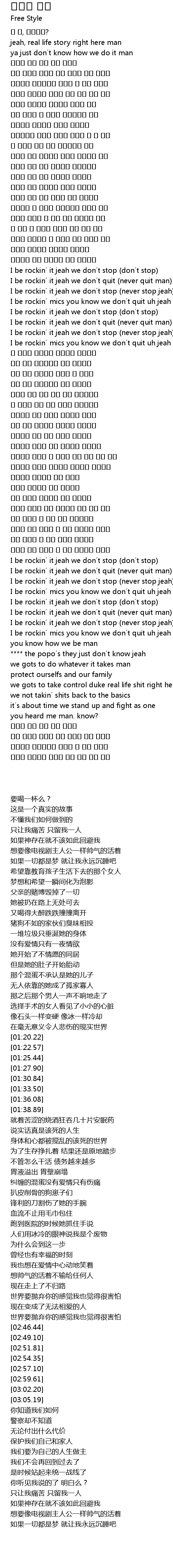 | [01:22.57] | I be rockin it jeah we don t quit never quit man |