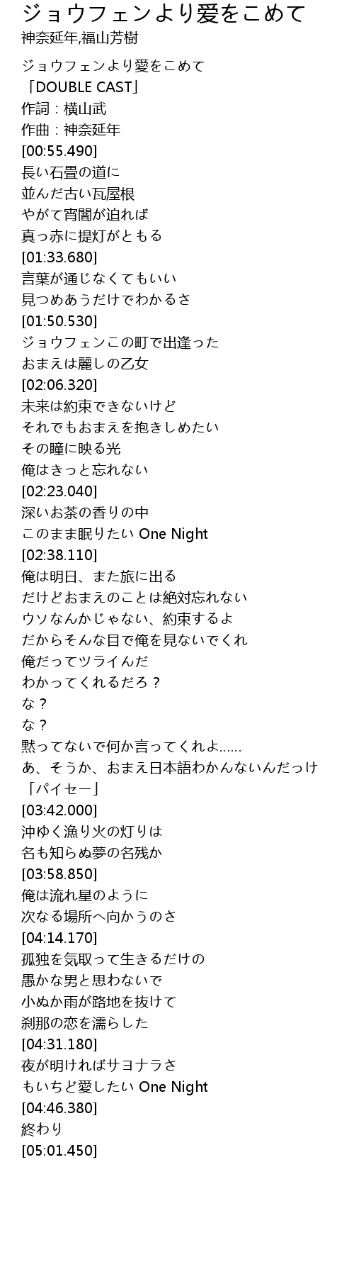 | [01:51.530] | ジョウフェンこの町で出逢った |