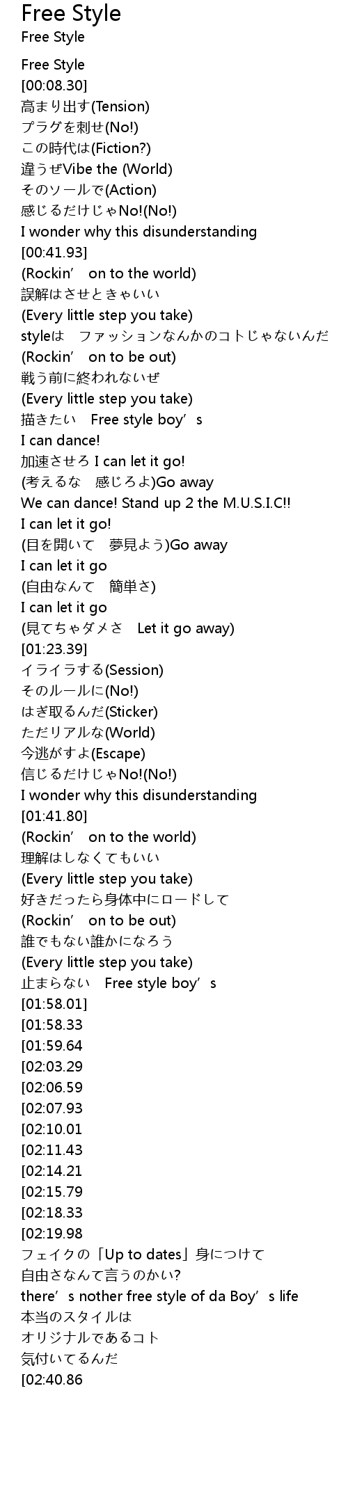 | [00:47.28] | styleは ファッションなんかのコトじゃないんだ |