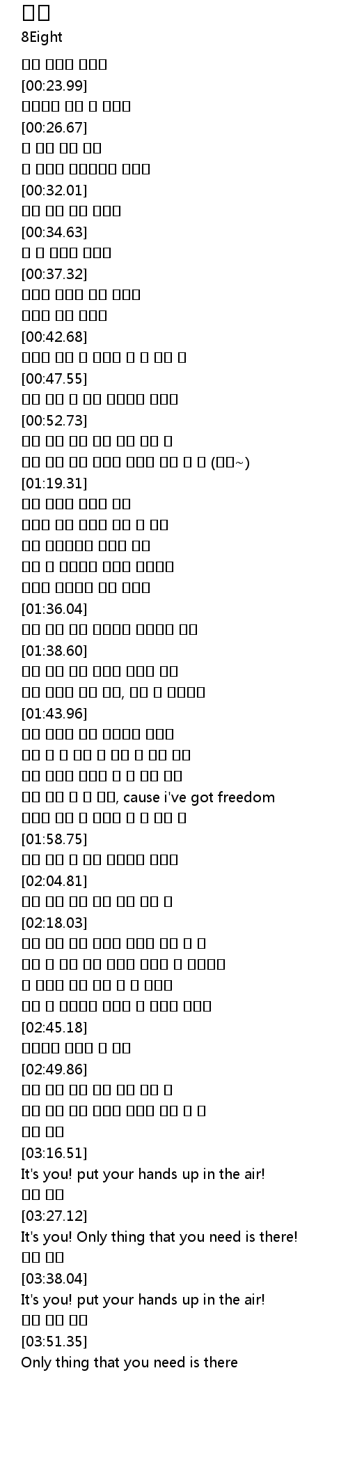 | [02:18.85] | 자유 자유 자유 새로운 태양을 보게 해 줄 |
