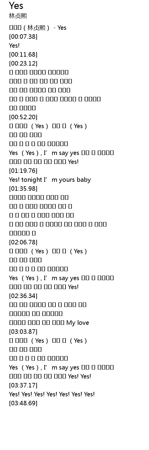 | [00:00.10] | 임정희(林贞熙) - Yes |