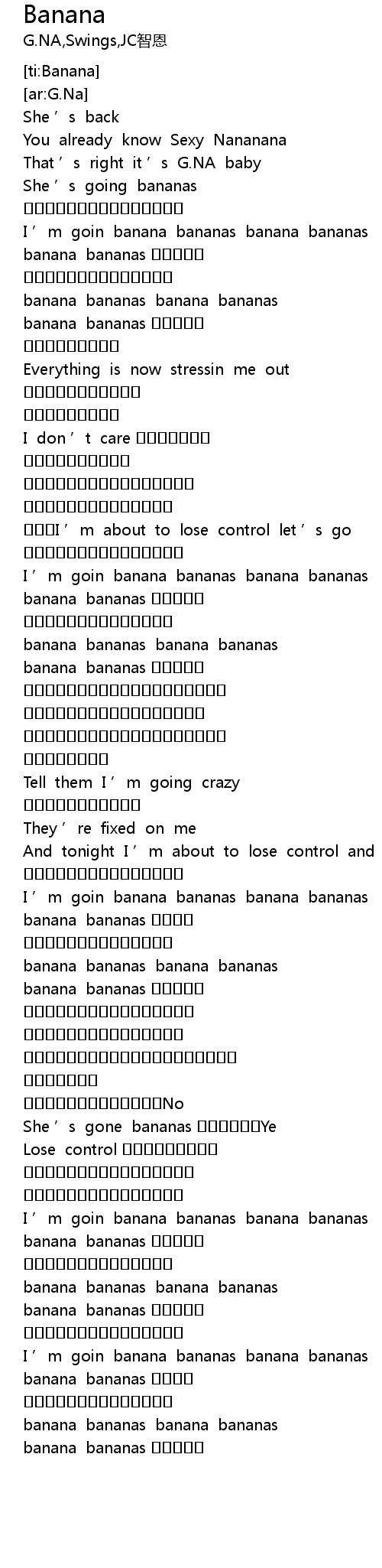 | [00:16.00] | I ’m goin banana bananas banana bananas |