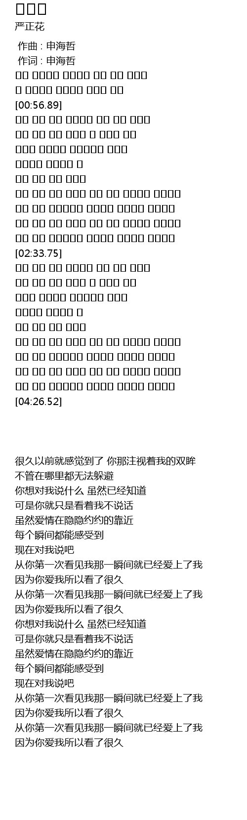 [04:08.81] 그대 나를 처음 본순간 이미 나를 사랑하고 있었다고