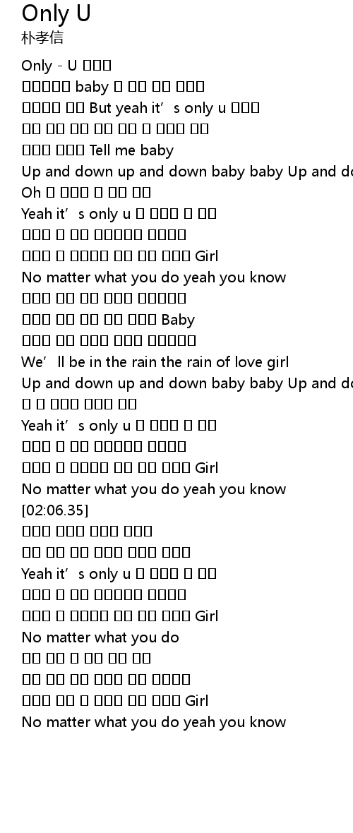 | [00:35.45] | Yeah it’s only u 난 다줄게 내 전부 |