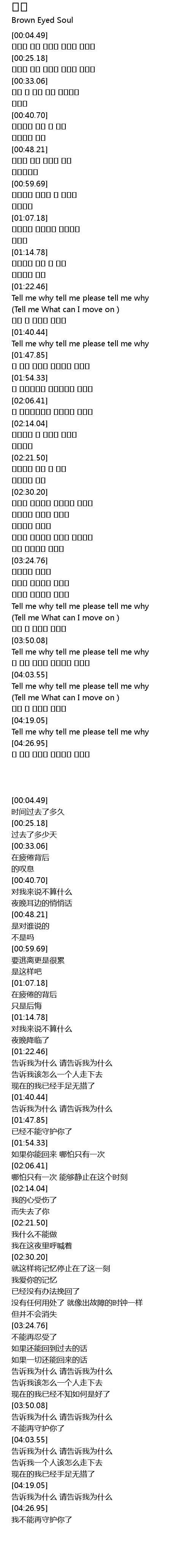 | [04:21.15] | Tell me why tell me please tell me why |
