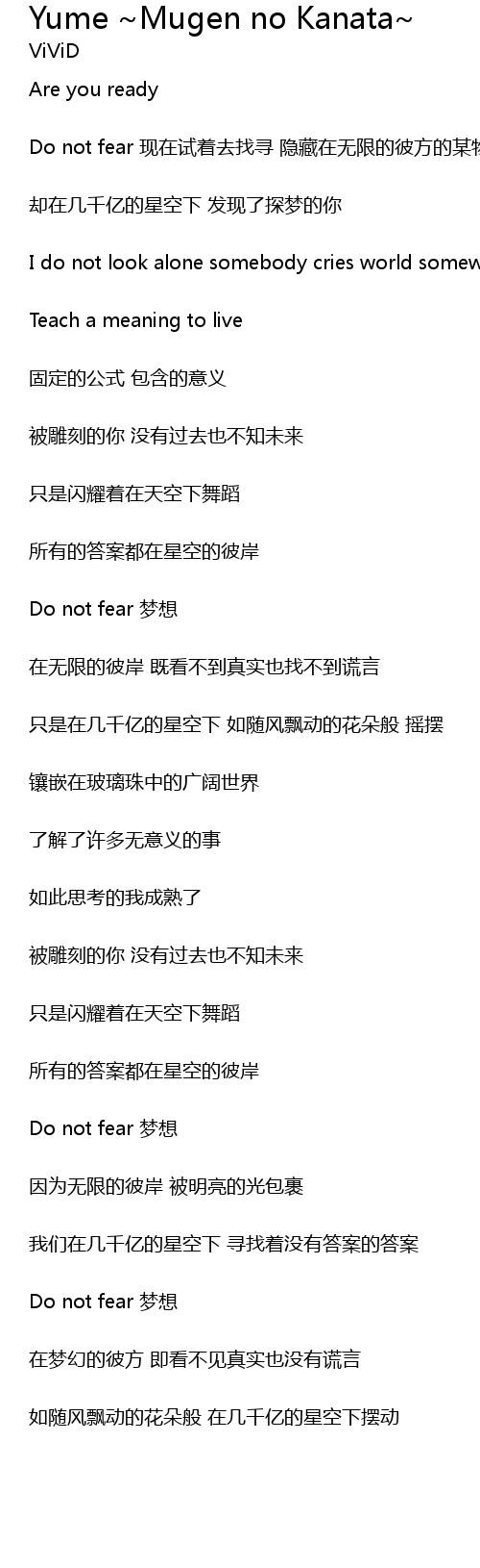 | Do not fear 现在试着去找寻 隐藏在无限的彼方的某物 | |
