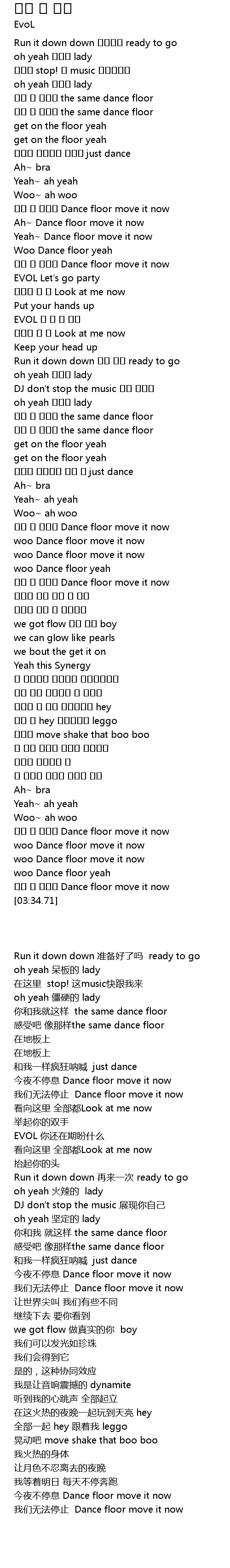 | [00:34.36] | 느껴 봐 그대로 the same dance floor |