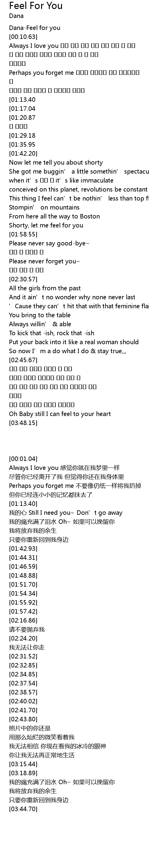 | [00:01.04] | Dana-Feel for you |