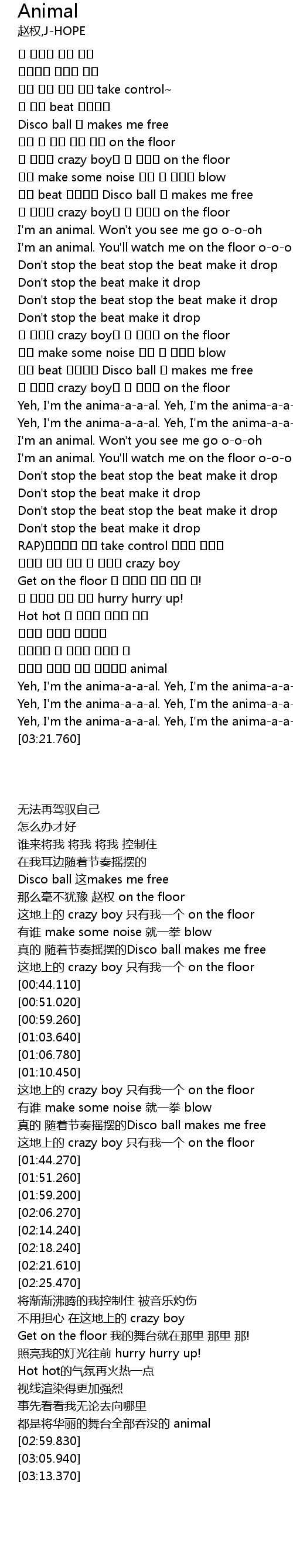 | [00:51.020] | I' m an animal. You' ll watch me on the floor oooh |