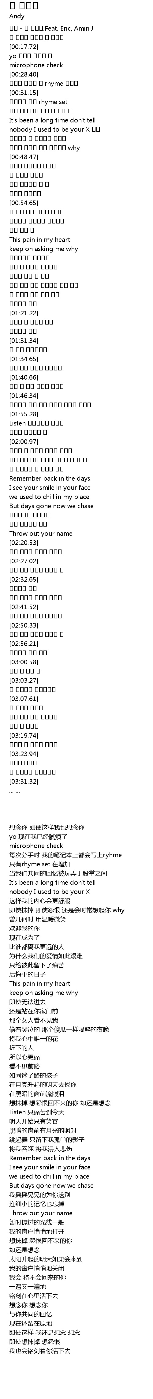 | [00:00.54] | 앤디 - 널 생각해.Feat. Eric, Amin.J |