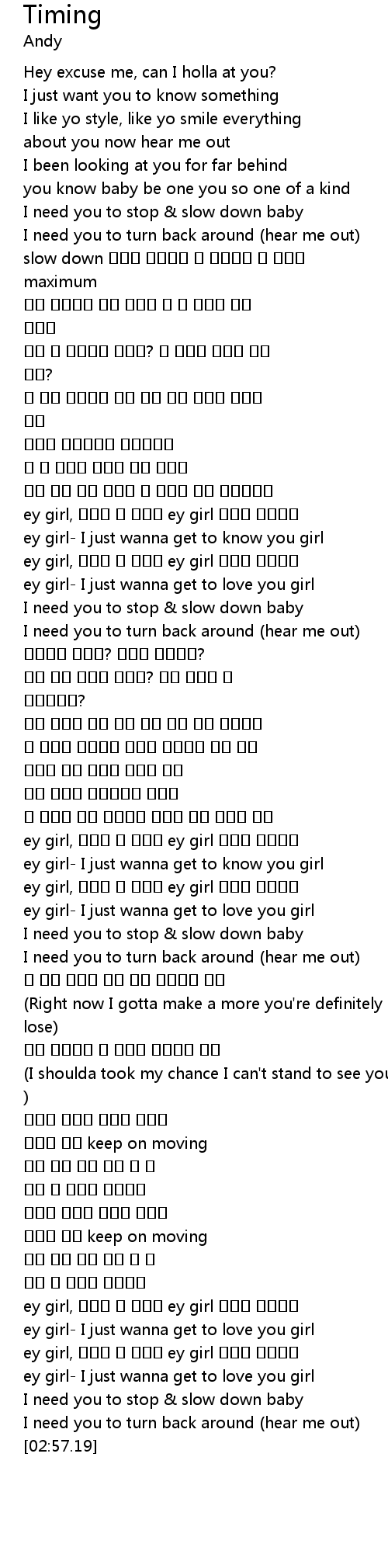 | [02:00.67] | I need you to stop & slow down baby |