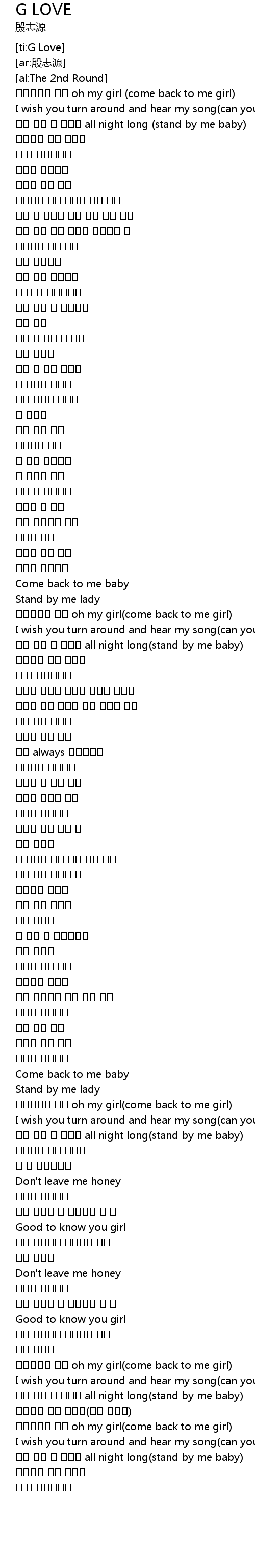 | [00:11.49] | oh my girl come back to me girl |