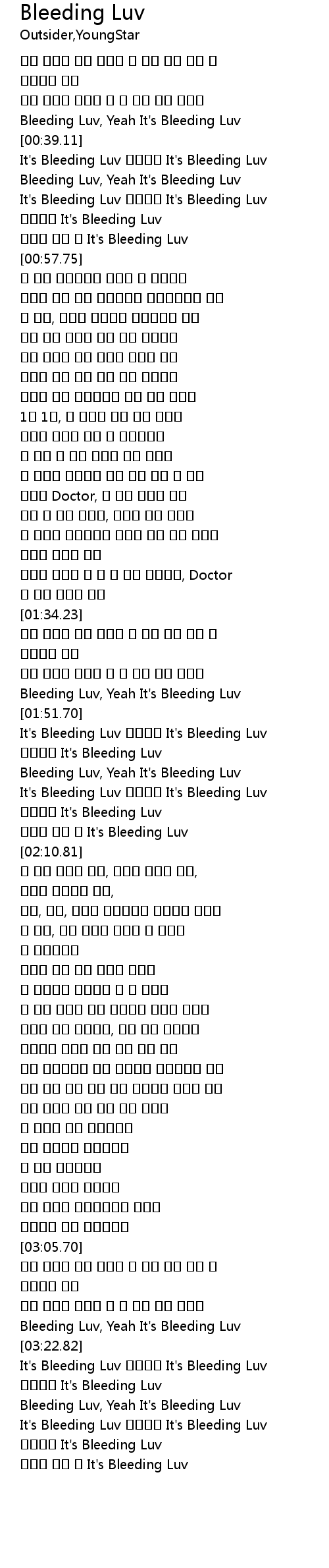 | [03:38.10] | 상처만 남긴 채 It's Bleeding Luv |