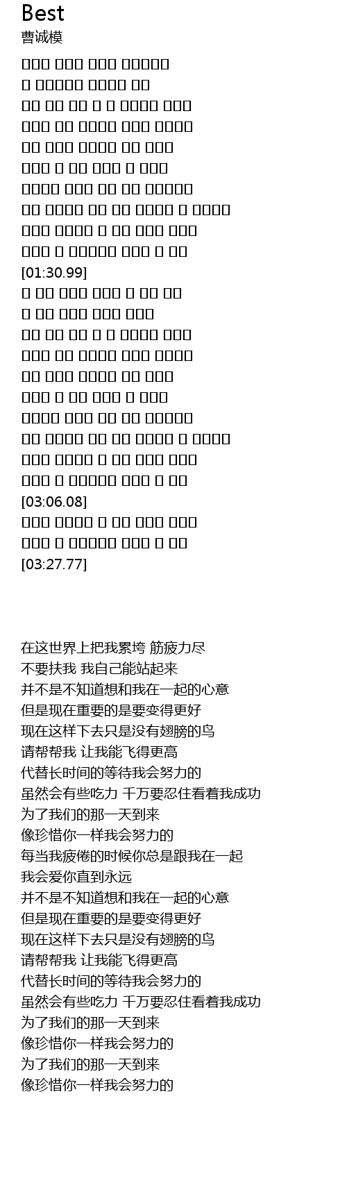 | [02:45.18] | 기다리는 것만큼 너를 위해 노력할꺼야 |