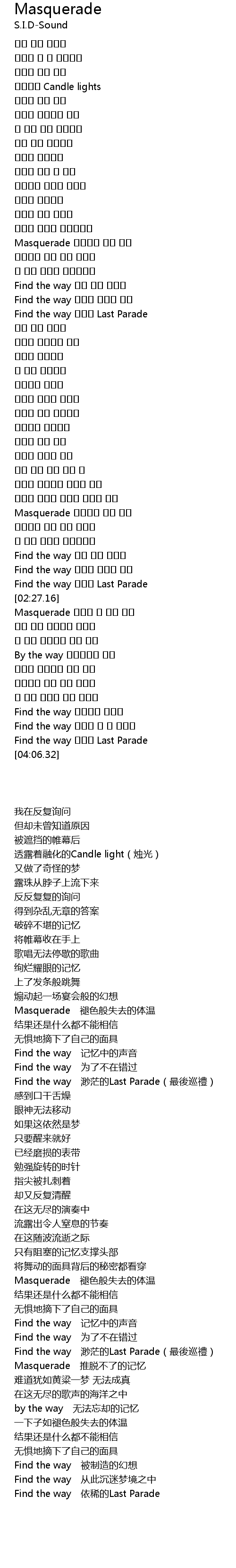 | [03:05.77] | Masquerade |