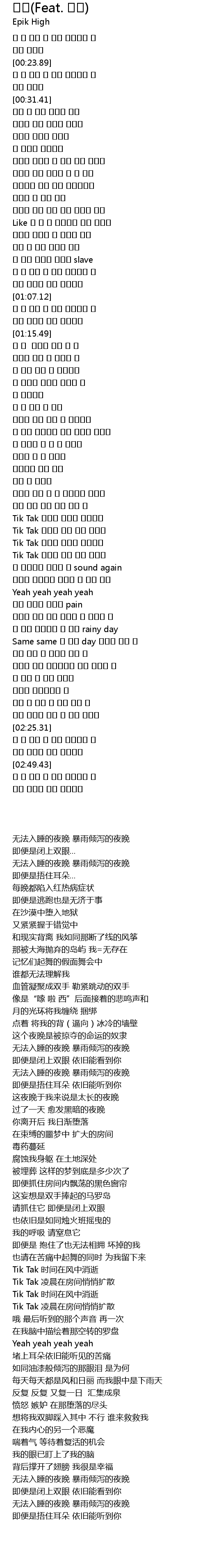 | [01:46.62] | Tik Tak 새벽이 방에 스며 퍼지고 |