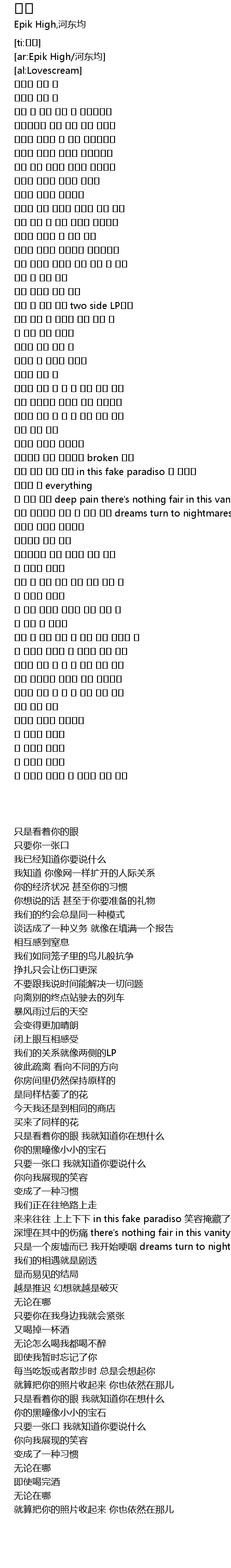 | [01:37.41] | 왔다 갔다 아래 위로 in this fake paradiso 그 미소가 숨기는 건 everything |