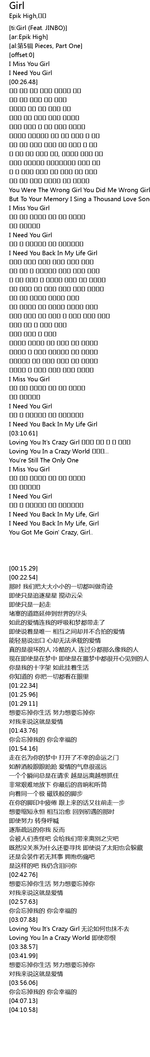 | [04:10.58] | I Need You Back In My Life, Girl |