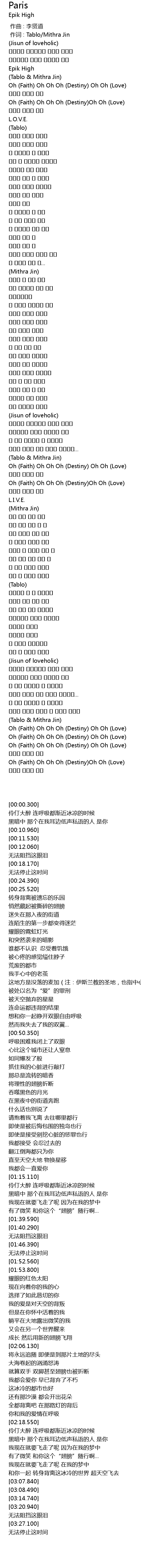 | [00:00.100] | 作词 : Tablo/Mithra Jin |