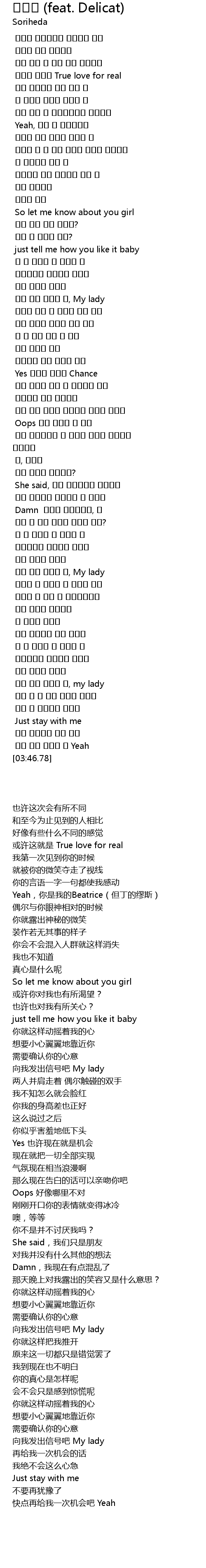 | [03:18.42] | 이제 내게 신호를 줘, my lady |