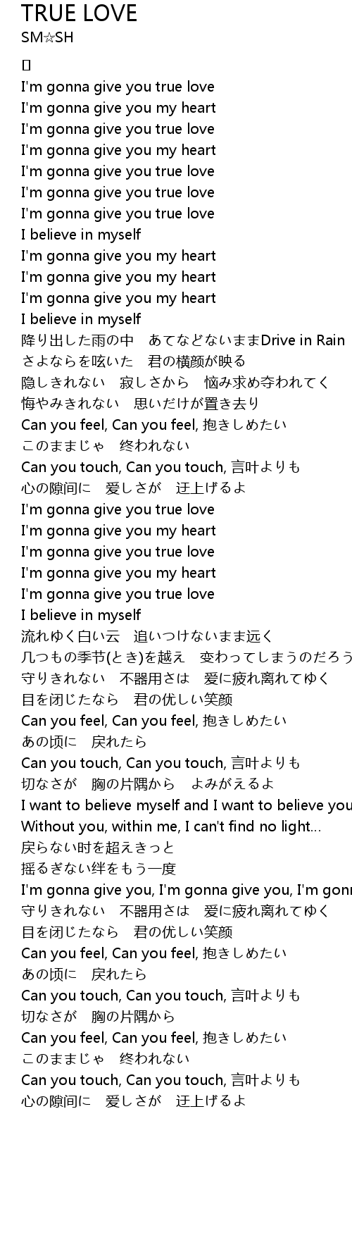 | I'm gonna give you, I'm gonna give you, I'm gonna give you, true love | |