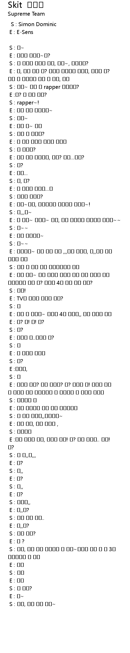 E : 너 임마~ 속사포~ 랩을, 랩을 엄청나게 빨리한단 말이야~~ |