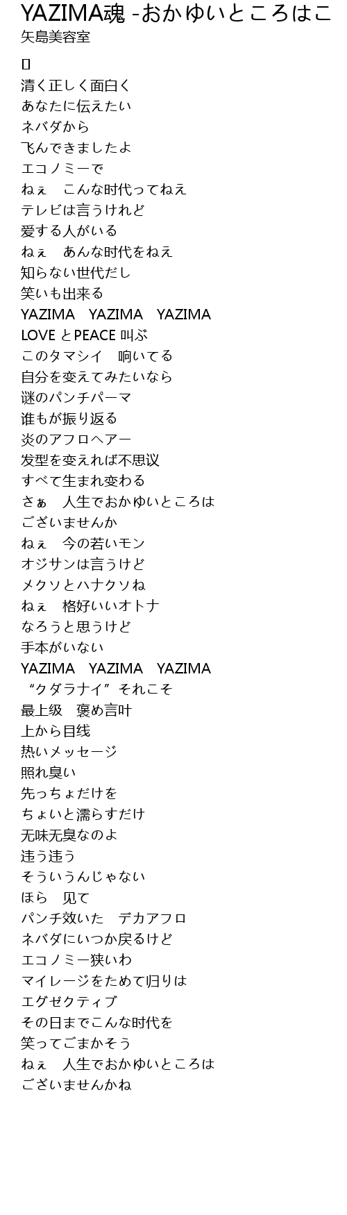 | Song | YAZIMA魂 -おかゆいところはございませんか- |