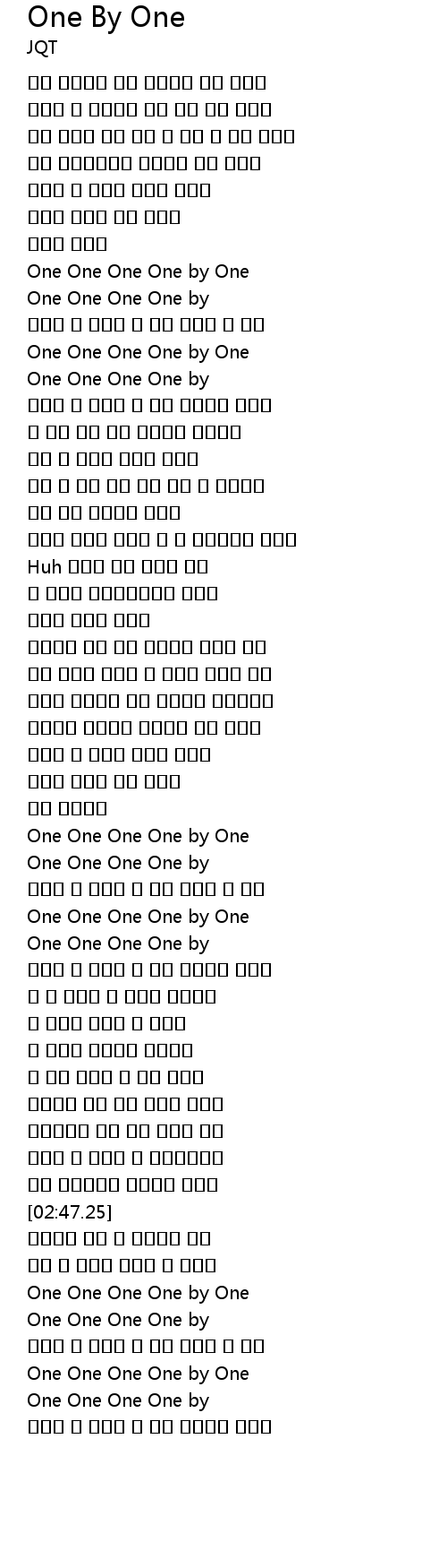 | [02:03.14] | One One One One by One |