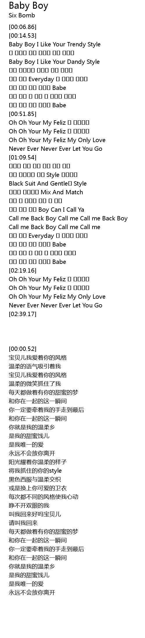 | [00:17.84] | Baby Boy I Like Your Trendy Style |