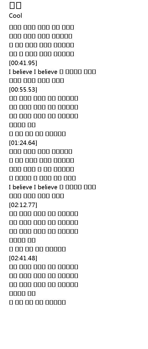 | [00:42.83] | I believe I believe 난 그대만을 믿어요 |