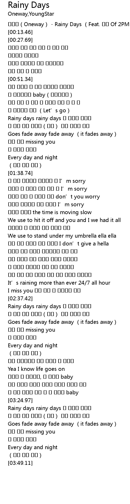 | [00:00.52] | 원웨이(Oneway) - Rainy Days (Feat. 준수 Of 2PM) |