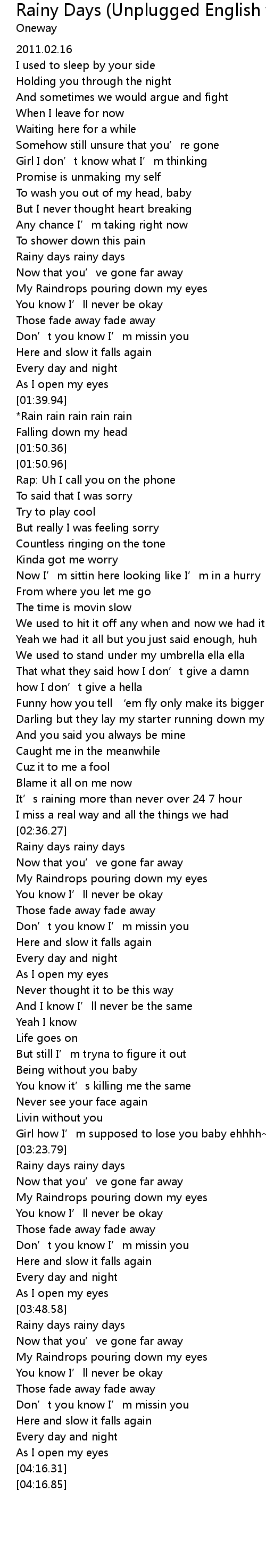| [02:36.64] | Rainy days rainy days |