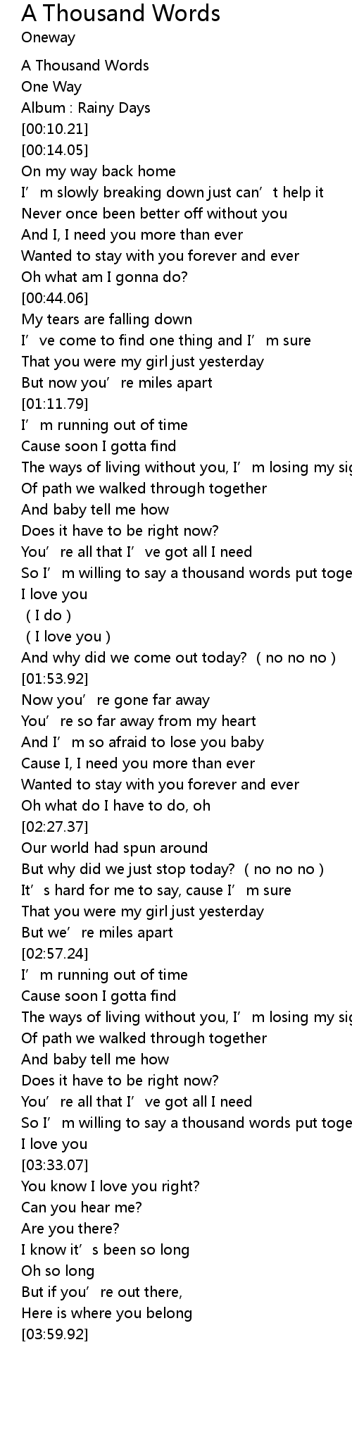 | [00:04.01] | A Thousand Words |