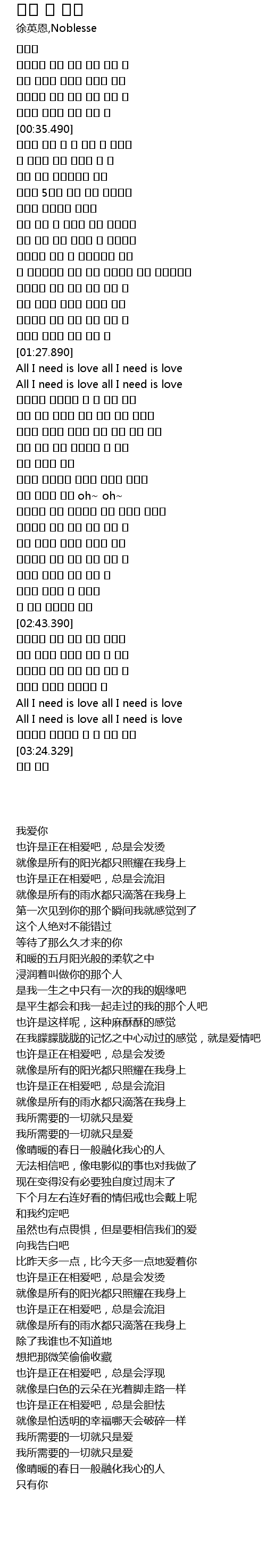 | [02:03.900] | 어제보다 많이 오늘보다 많이 그대를 사랑해 |