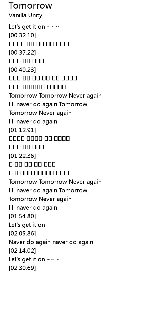 | [01:34.60] | Tomorrow Tomorrow Never again |