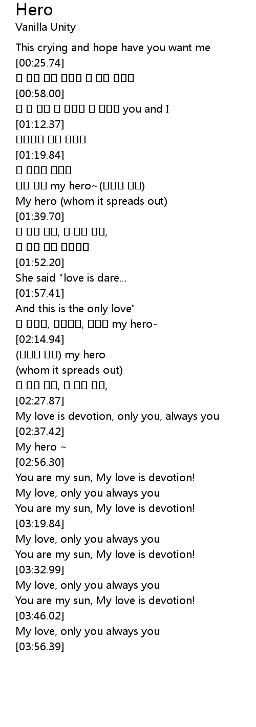 | [01:25.42] | 너와 내게 my hero~(내게는 항상) |
