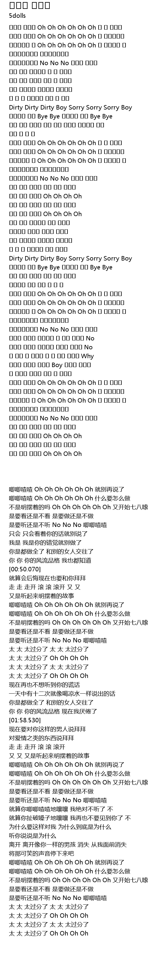 | [00:50.070] | Dirty Dirty Dirty Boy Sorry Sorry Sorry Boy |
