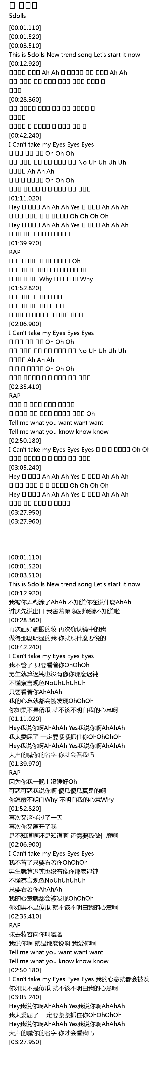 | [02:51.020] | I Can' t take my Eyes Eyes Eyes Oh Oh Oh |