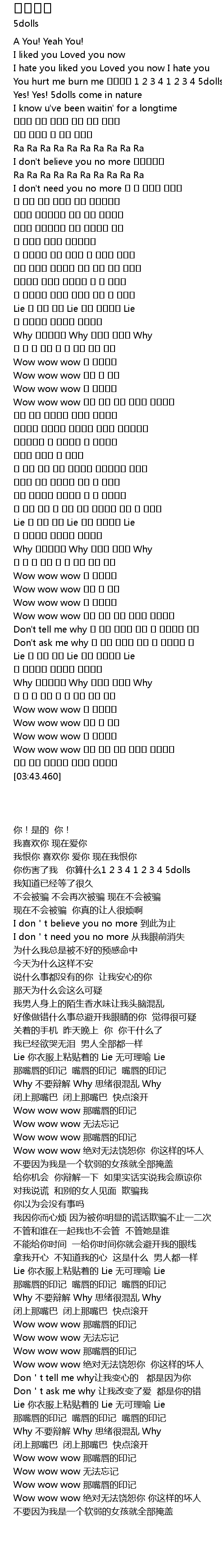 | [00:11.800] | You hurt me burn me 1 2 3 4 1 2 3 4 5dolls |