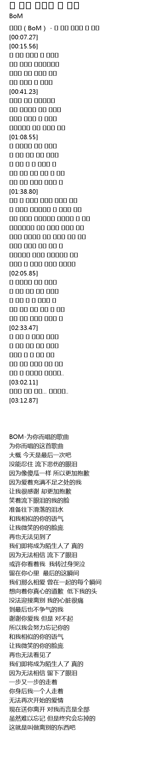 비오엠(BoM) - 널 위해 부르는 이 노래 |